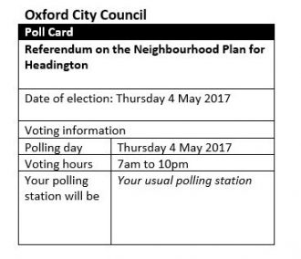 On Thursday 4 May 2017, there was a referendum on the neighbourhood development plan for Headington.